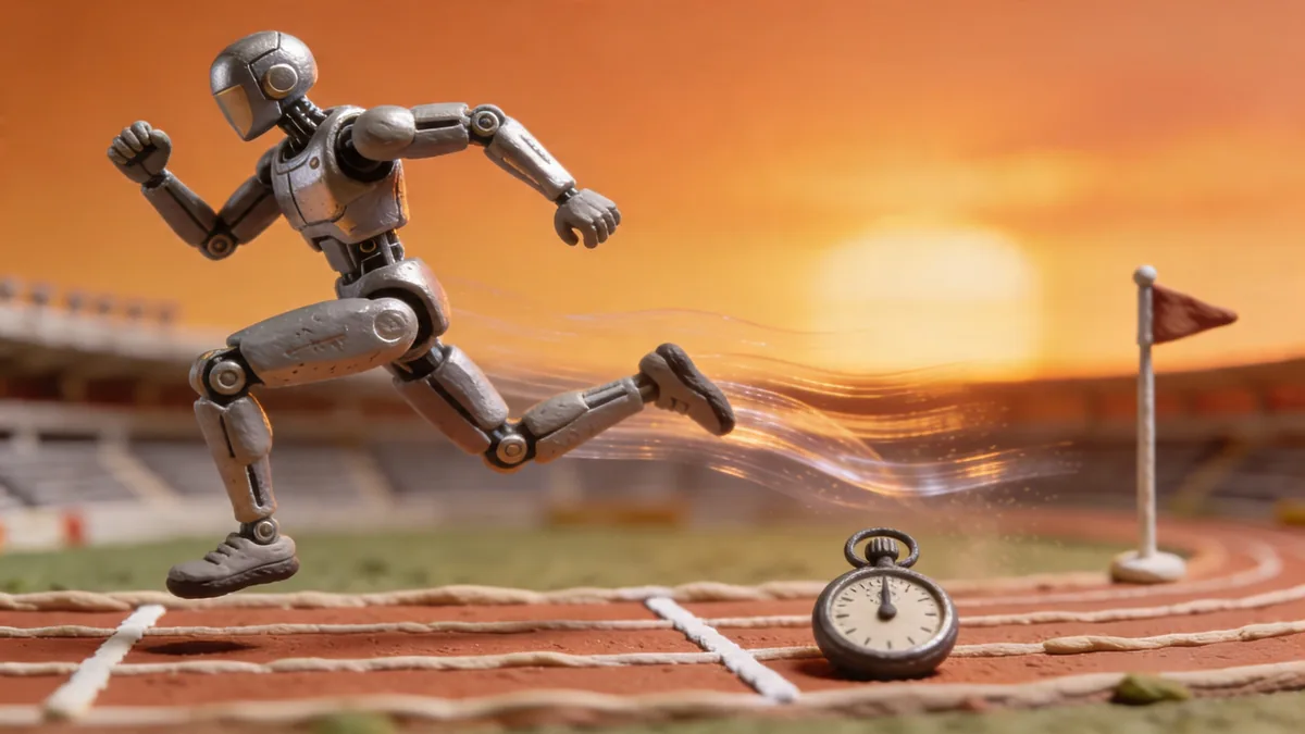 11 апреля 2026 года на профессиональной беговой дорожке гуманоид Unitree H1 прошёл отметку 10 м/с. Измеритель зафиксировал пиковую скорость 10.1 м/с — при том что компания осторожно отмечает возможную погрешность. Даже с поправкой это втрое быстрее предыдущего мирового рекорда, который принадлежал этому же роботу: 3.3 м/с, зафиксированные Guinness в марте 2024-го. Трусца превратилась в полноценный бег.